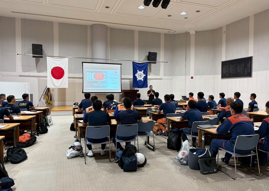 三重県消防学校救助科教育においてROPES Level1を初めて取り入れていただき、多数の見学者も含めて三重県のロープレスキューの新たな一歩となりました🎈
